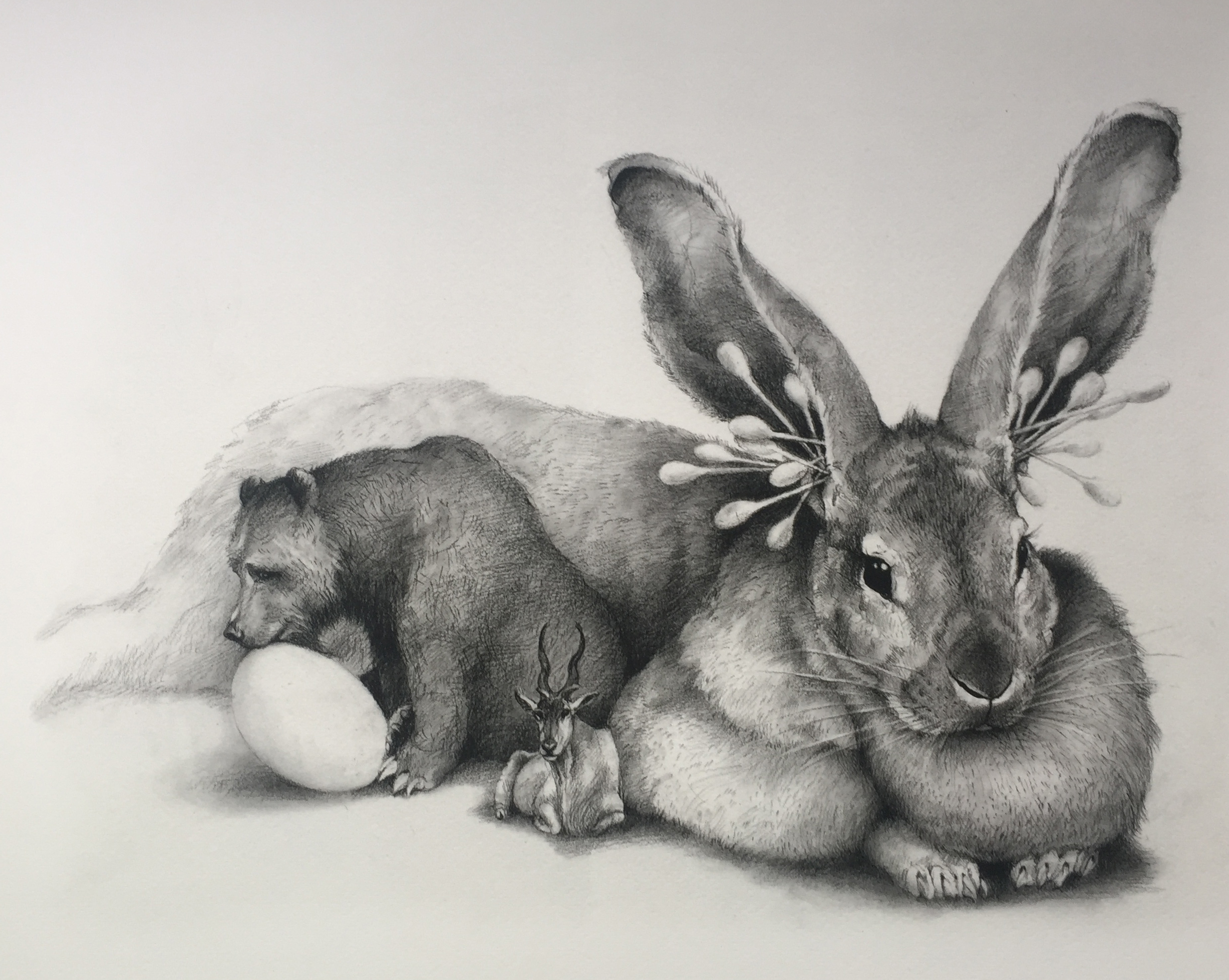 Hear No Evil Bunny Prints. Printed on archival acid free paper, 100 prints will be made in total. The paper is 12"x15" with an image size of 9"x12". The edges are hand deckled. Each one will be hand numbered and signed by Adonna Khare.